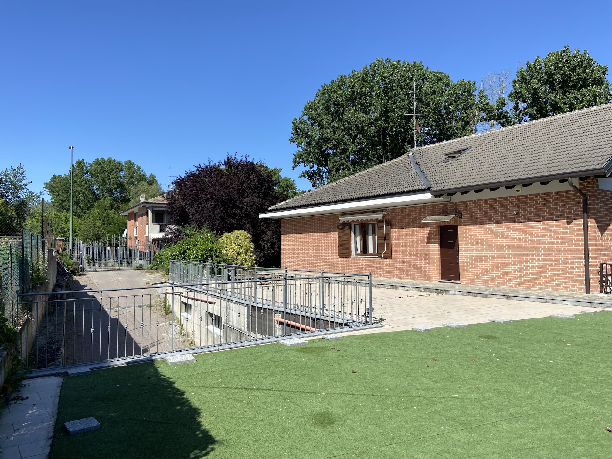VIA TREVES IN CONTESTO MOLTO TRANQUILLO DI ACCESSO PER I SOLI RESIDENTI SI PROPONE LA VENDITA DI VILLA EDIFICATA NEGLI ANNI OTTANTA IN PARAMANO COMPOSTA DA DUE APPARTAMENTI CON INGRESSI INDIPENDENTI PER UN TOTALE COMPLESSIVO DI CIRCA 300 MQ DI SUPERFICIE. GLI APPARTAMENTI NON NECESSITANO DI INTERVENTI DI RISTRUTTURAZIONE RECENTEMENTE SONO STATI SOSTITUITI I SERRAMENTI. L’IMMOBILE GODE DI UN OTTIMA POSIZIONE COMODA AI SERVIZI ED ALLE INFRASTRUTTURE A POCHI MINUTI DAL CENTRO E NELLO STESSO TEMPO VICINO ALLE AREE VERDI DELLA ZONA NORD. COMPLETANO LA PROPRIETA’ IL GIARDINO DAVANTI ALL’INGRESSO PRINCIPALE, L’AMPIO CORTILE ED IL TERRENO DA ADIBIRSI AD ORTO SUL RETRO DELL’IMMOBILE OLTRE AL GARAGE PRIVATO. COMPRESO NEL PREZZO DI VENDITA VI E’ UN AMPIO MAGAZZINO INTERRATO CON INGRESSO INDIPENDENTE AUTOMATIZZATO DI CIRCA 600 MQ CHE POTREBBE DARE UN’OTTIMA RENDITA DA LOCAZIONE QUALORA L’ACQUIRENTE NON LO ADIBISCA ALLA PROPRIA ATTIVITA’